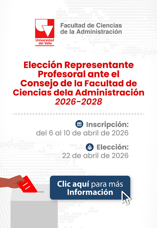 Informes: Programa de Comunicaciones, Facultad de Ciencias de la Administración, Universidad del Valle. Tel: 321 2100. Ext. 4350