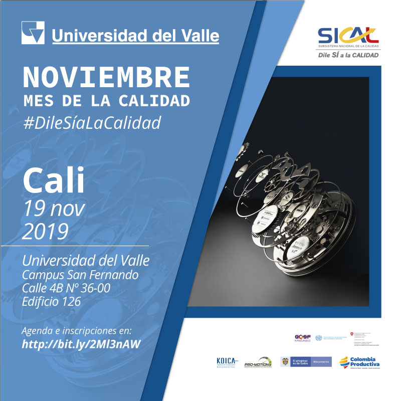 Con una agenda de eventos liderada por las principales entidades del Subsistema Nacional de la Calidad (SICAL) y el Ministerio de Comercio, Industria y Turismo, se llevará a cabo este martes 19 de noviembre en la Facultad de Ciencias de la Administración de la Universidad del Valle, la tercera jornada académica y de sensibilización, que se desarrolla en el marco de la celebración del Mes de la Calidad.