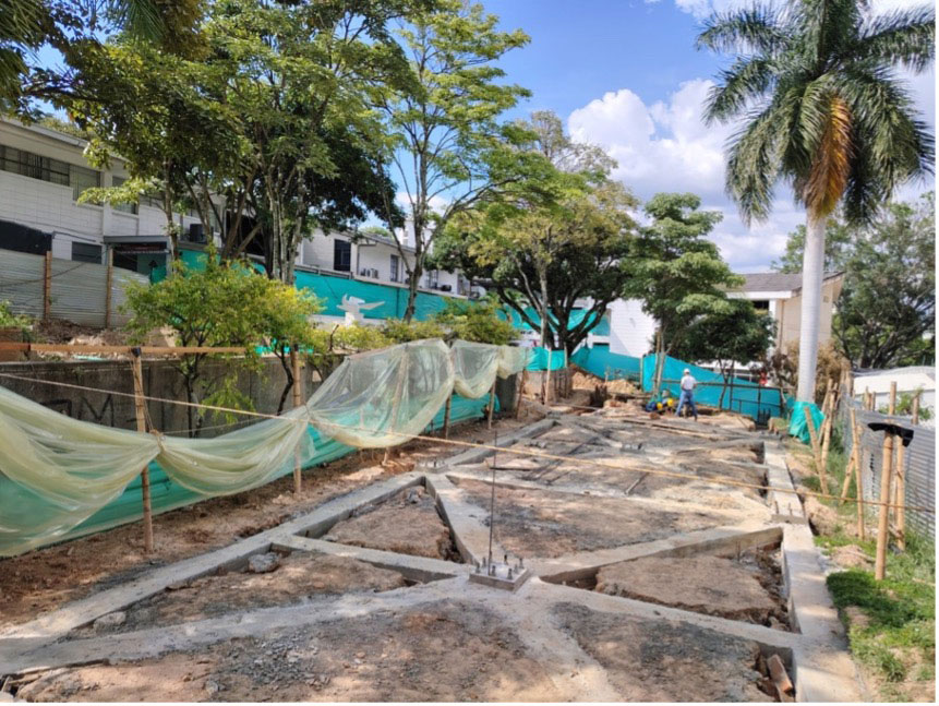 Agradecemos su comprensión y colaboración ante esta medida temporal, implementada para mejorar la infraestructura universitaria y el bienestar de toda la comunidad. El cierre anterior ha significado un avance en la obra en la fundición de zapatas como se puede evidenciar en la siguiente imagen: