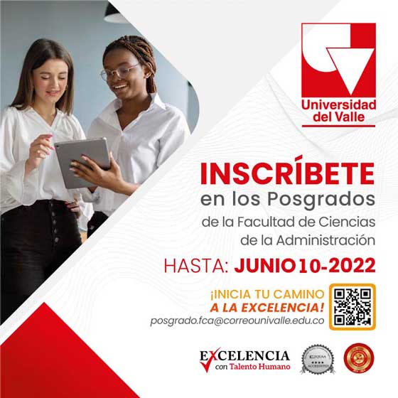La Facultad de Ciencias de la Administración de la Universidad del Valle ofrecerá para el segundo semestre del año 2022, una amplia oferta de programas académicos de posgrados acordes a las demandas empresariales y sociales de la región y del país.