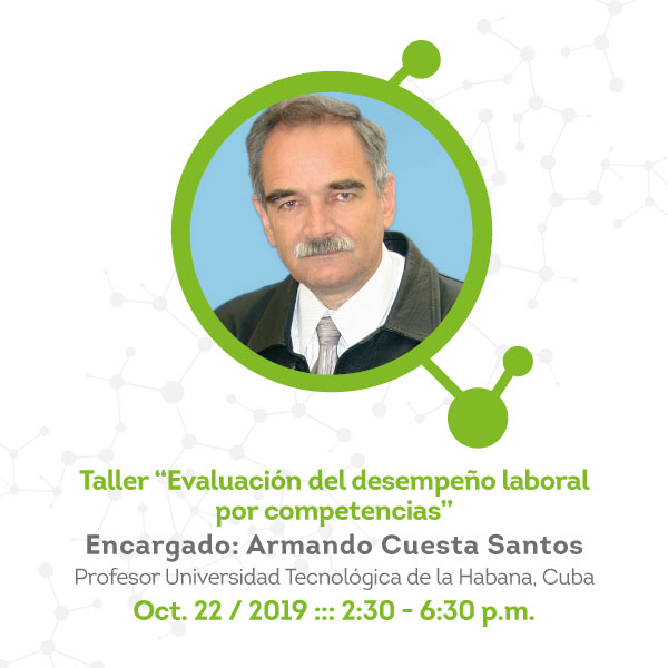 El próximo 22 de octubre de 2019, como parte de la agenda académica que ofrecerá la Escuela Internacional de Formación Avanzada "Gestión del Conocimiento, Innovación y Recursos Humanos" – EIFA GECIRH 2019, se llevará a cabo el Taller Evaluación del desempeño laboral por competencias, presentado por Armando Cuesta Santos, profesor de la Universidad Tecnológica de la Habana, Cuba.