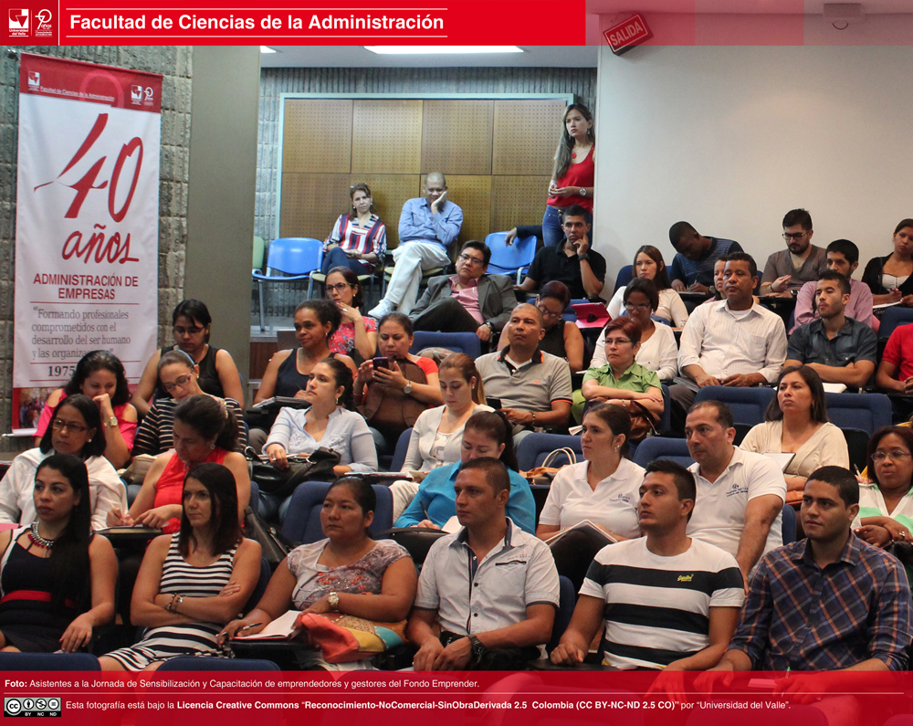 En el marco del contrato interadministrativo entre la Universidad del Valle y el Fondo Financiero de Proyectos de Desarrollo (FONADE) se realizó el miércoles 02 de marzo en el Auditorio Diego Delgadillo de la Facultad de Ciencias de la Administración, la Jornada de Sensibilización y Capacitación de Emprendedores y Gestores del Fondo Emprender. Esta actividad tuvo como propósito dar a conocer los procesos de interventoría en procura de que la mayoría de los beneficiarios salgan favorecidos con la condonación de su proyecto o unidad de negocio.