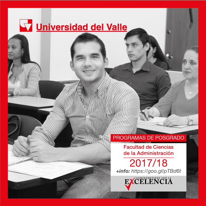 La Facultad de Ciencias de la Administración de la Universidad del Valle informa a la comunidad académica y público en general que tiene abiertas las inscripciones a los programas de posgrados correspondientes al periodo febrero-junio de 2018.