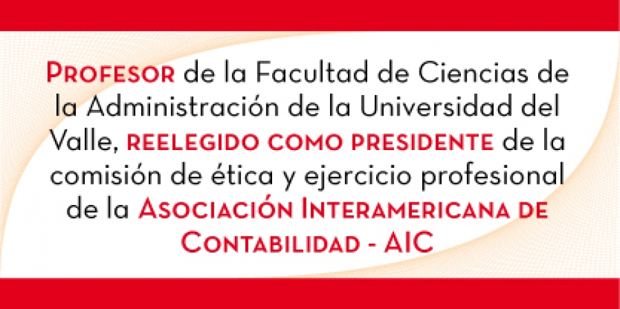 El profesor de la Facultad de Ciencias de la Administración de la Universidad del Valle, Omar de Jesús Montilla Galvis, fue recientemente designado, por tercer periodo consecutivo, como Presidente de la Comisión de Ética y Ejercicio Profesional de la Asociación Interamericana de Contabilidad AIC, en esta ocasión designado para el periodo 2016- 2017.