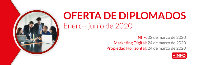 Diplomado en Normas Internacionales de Información Financiera NIIF, Diplomado en Administración de la Propiedad Horizontal y Diplomado en Marketing Digital.