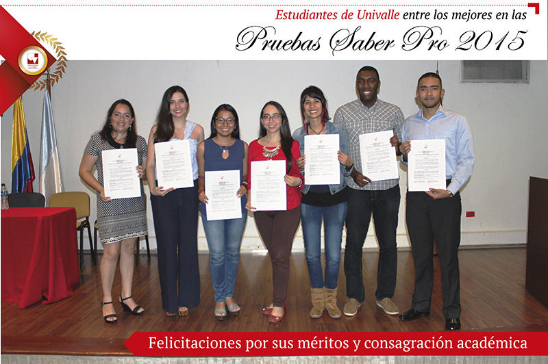 Directivos de la Facultad de Ciencias de la Administración de la Universidad del Valle hicieron entrega de reconocimientos a los estudiantes que recibieron de parte del Ministerio de Educación Nacional el “Premio Saber Pro”, por estar entre los más altos puntajes en el examen de estado de calidad de la educación superior, en las pruebas de competencias genéricas y específicas SABER PRO, realizado en el año 2015.