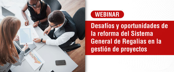 Este webinar tiene como objetivo actualizar e incentivar a la comunidad universitaria, entidades territoriales y en general a los participantes, sobre los retos y oportunidades de esta nueva reforma del Sistema General de Regalías en la gestión de proyectos; entendiendo que se han presentado importantes actualizaciones y modificaciones en la reforma de las regalías provenientes de la producción de minerales e hidrocarburos con el fin impulsar la reactivación económica de las regiones.